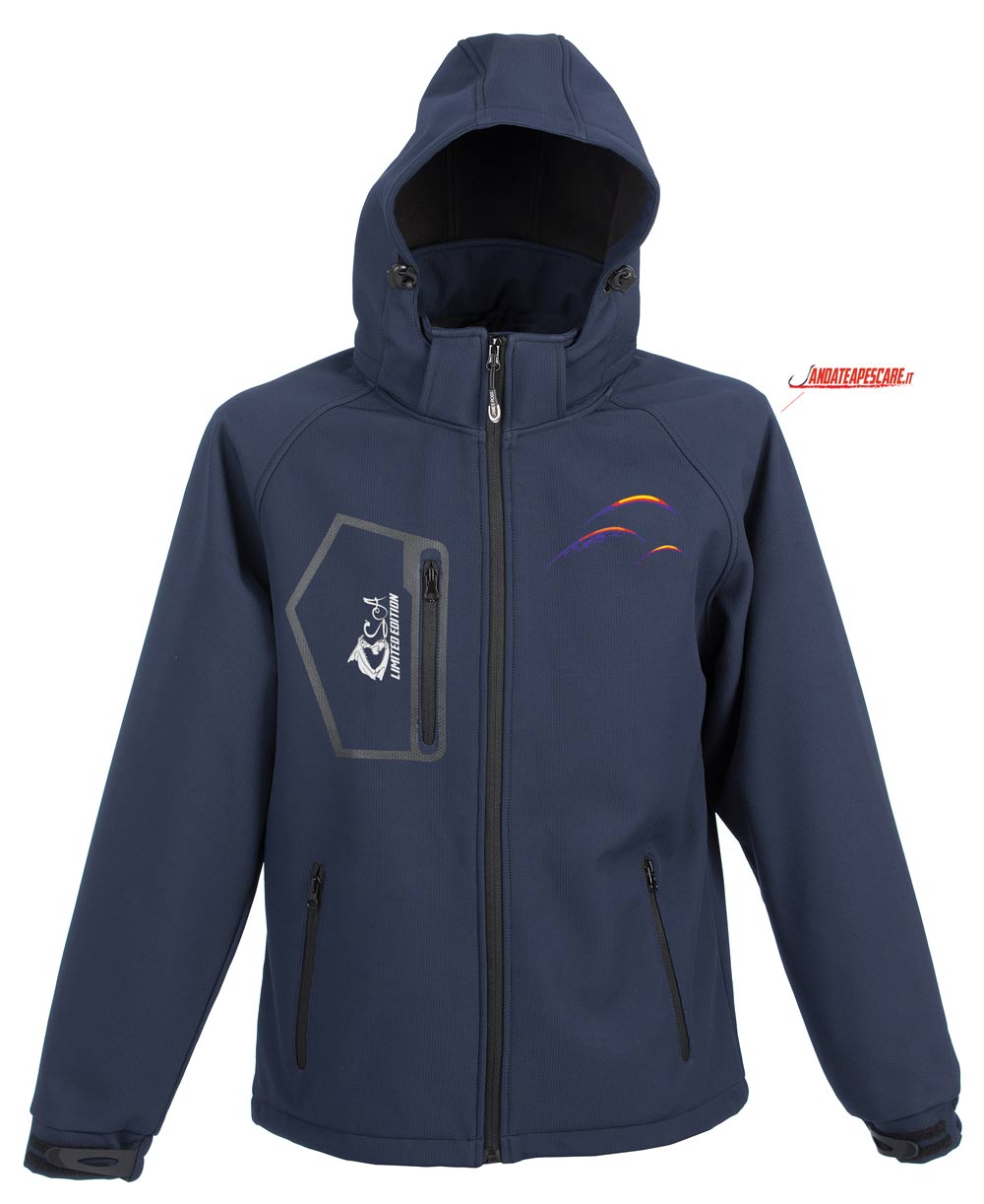 Giacca in Soft Shell 3 strati SA Limited Edition, progettata per tenervi al caldo a pesca. Elegante Comoda e Caldissima. Giubbino in softshell a tre strati, impermeabile e traspirante